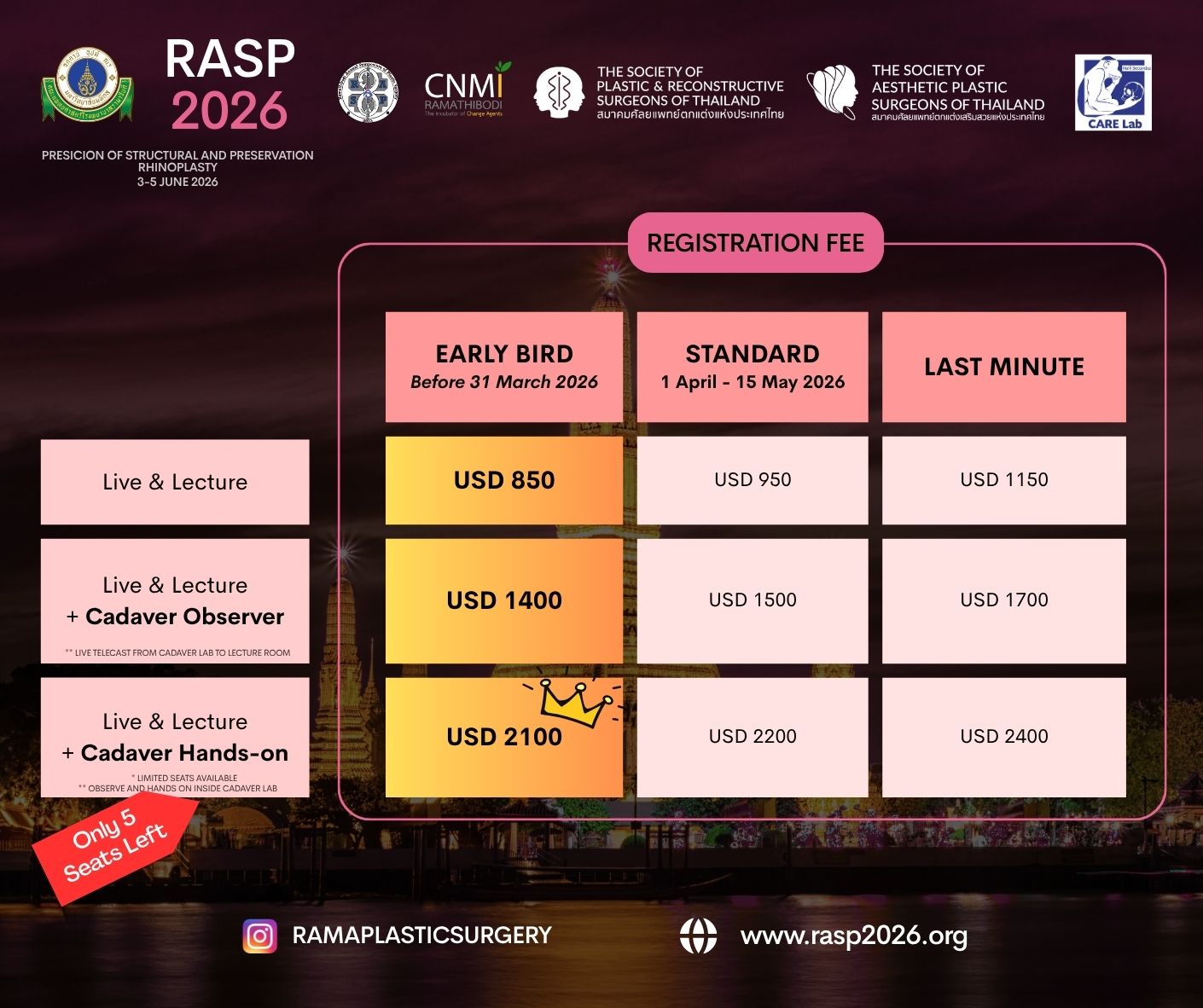 On behalf of plastic surgery division, department of surgery, Mahidol university at Ramathibodi hospital, it is our great pleasure to invite you to participate in the upcoming International Ramathibodi annual symposium of plastic surgery 2026 (RASP) which will be held in Bangkok, Thailand from 3-5 June 2026.