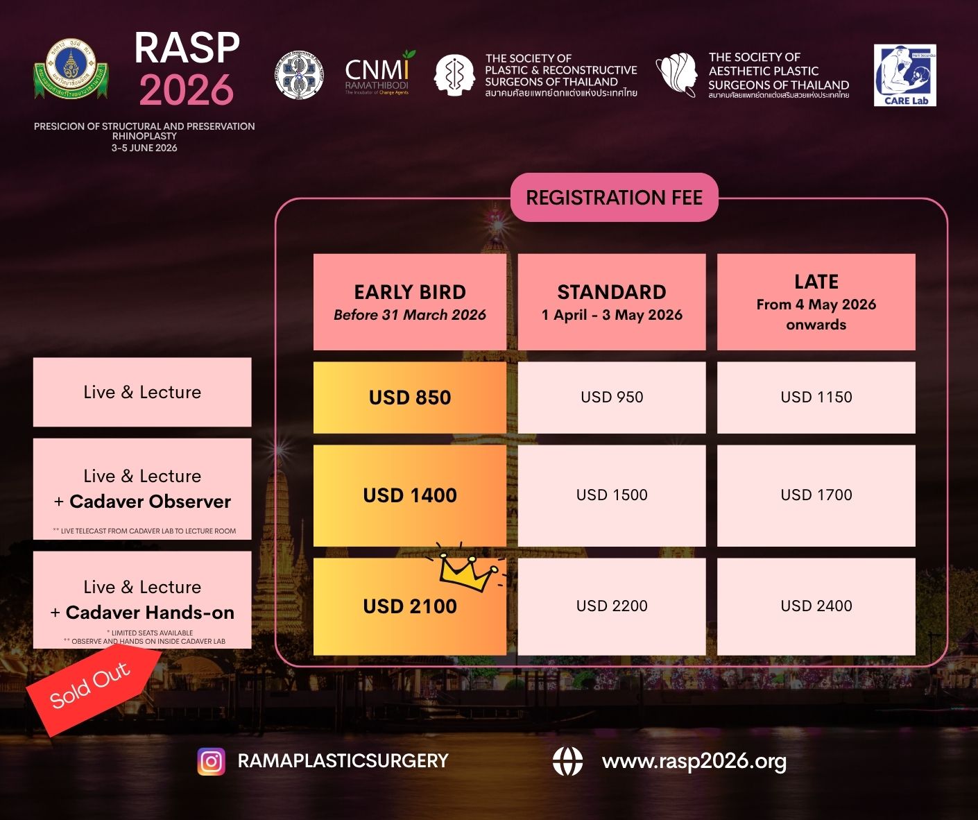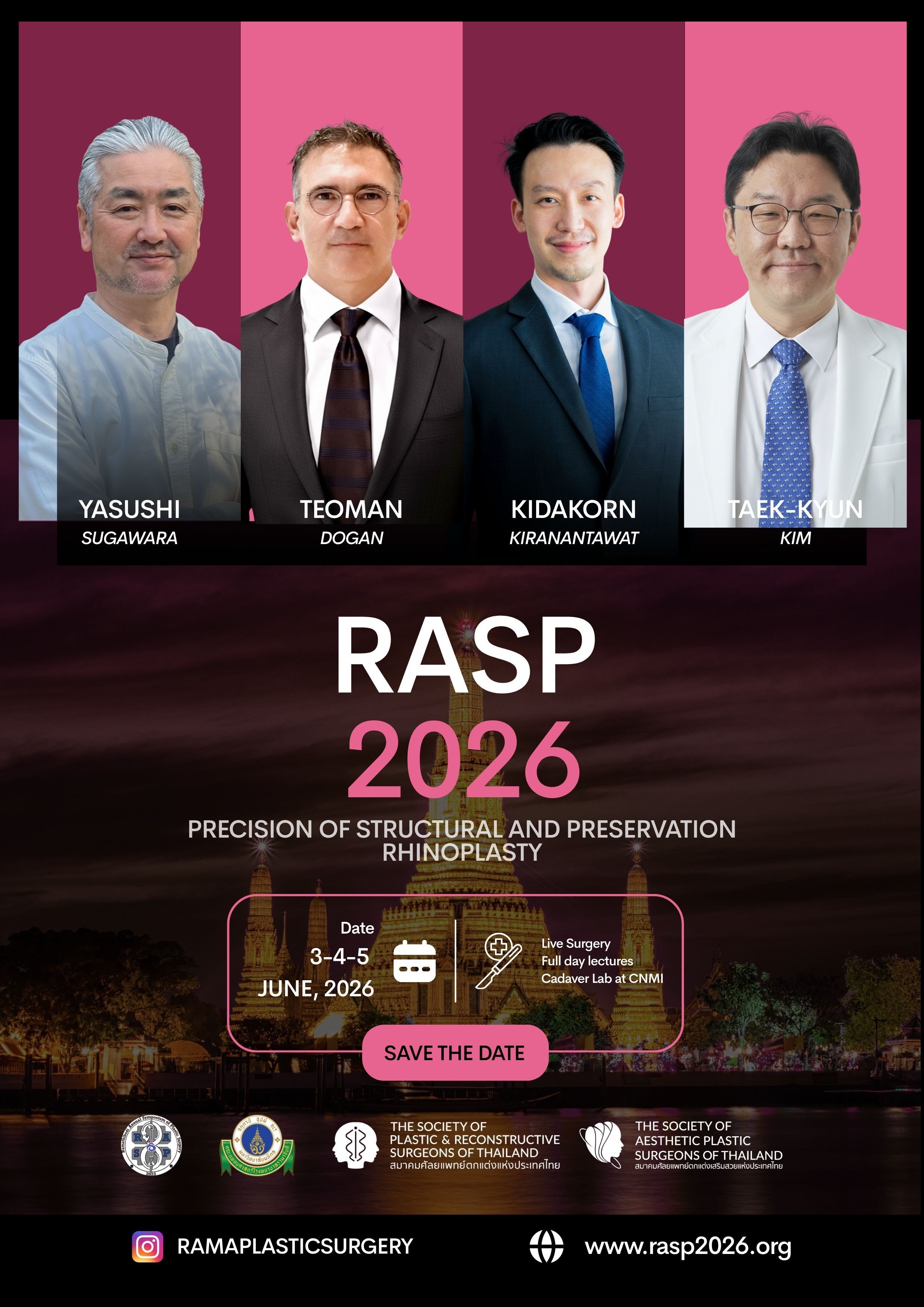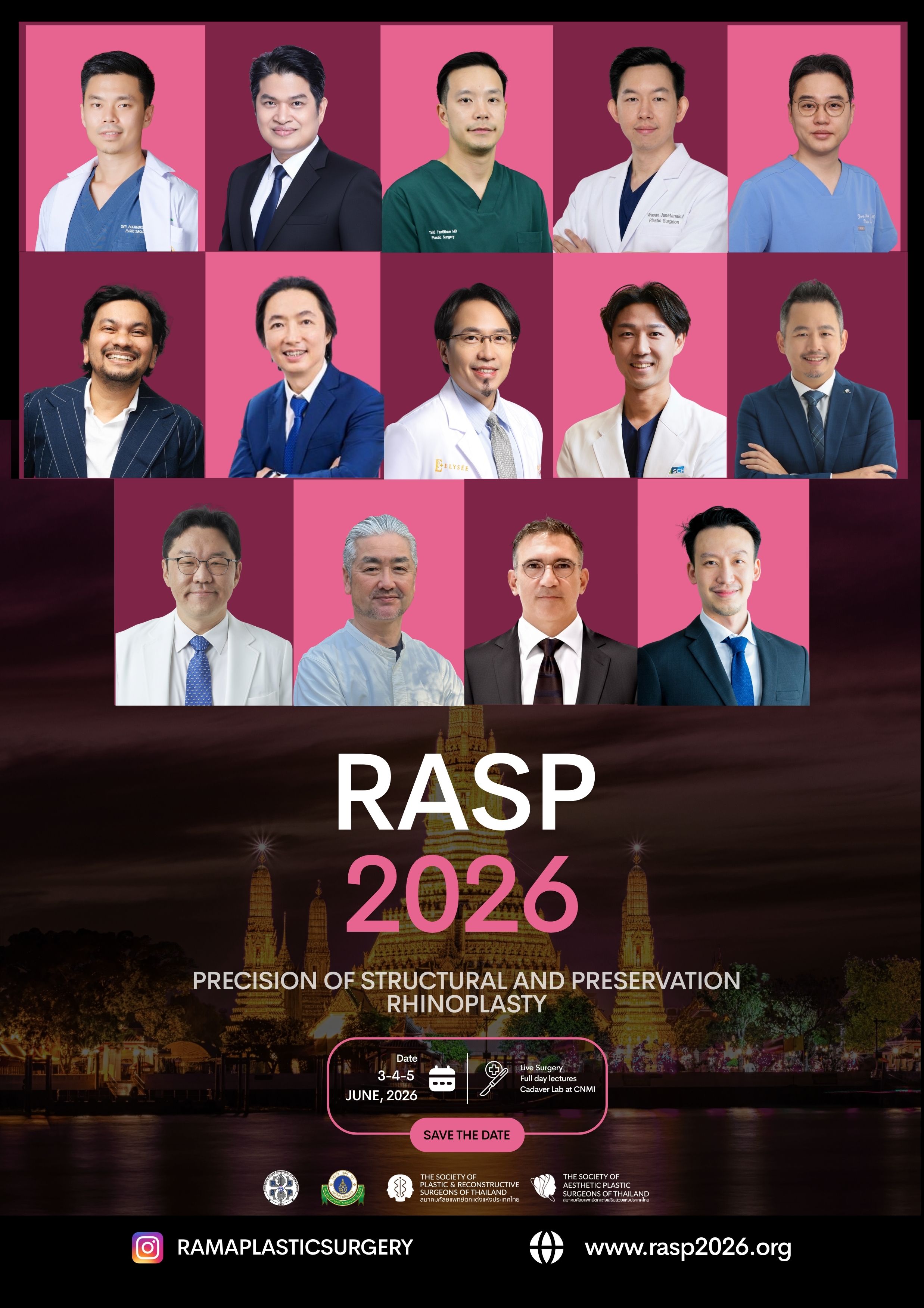 On behalf of the Society of Plastic and Reconstructive Surgeons of Thailand (ThPRS), in collaboration with Mahidol University at Ramathibodi Hospital, I am pleased to invite you to the International Ramathibodi Annual Symposium of Plastic Surgery 2026 (RASP), held in Bangkok from June 3–5, 2026.